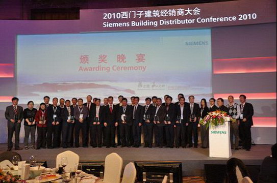 在西門子(中國)有限公司舉辦的成都青城山“2010西門子樓宇科技集團(tuán)經(jīng)銷商大會”期間我公司喜獲“西門子建筑CPS BU佳經(jīng)銷商獎”。